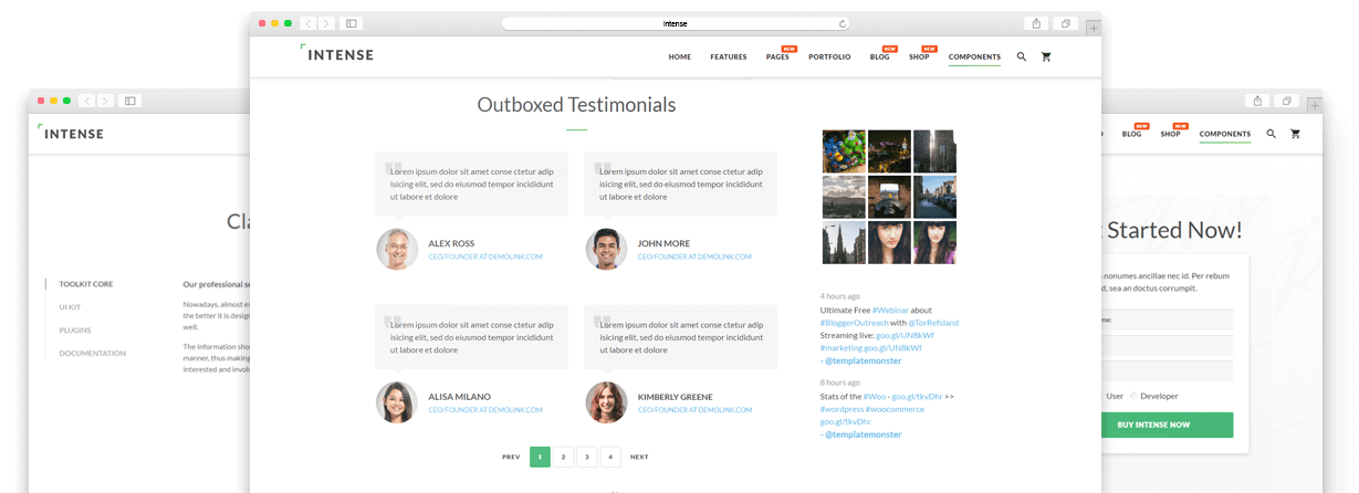 Content is the most important part of any website. Template components of Intense Theme are designed for perception of information as comfortable. These include sections, infographics, counters, tables, etc.